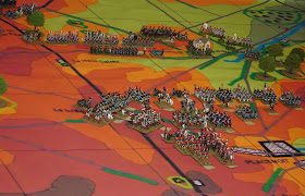 While we had the full playing surface (easy when you have printed terrain), we just had the troops as per the Quatre Bras Order of Battle. That is about a third of the French force and half the Allied (significantly very short on artillery and cavalry).